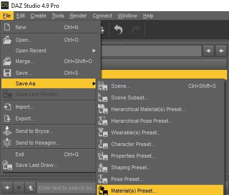 - Now to save all this work as a surface.  Go to File, Save As, Material(s) Preset...