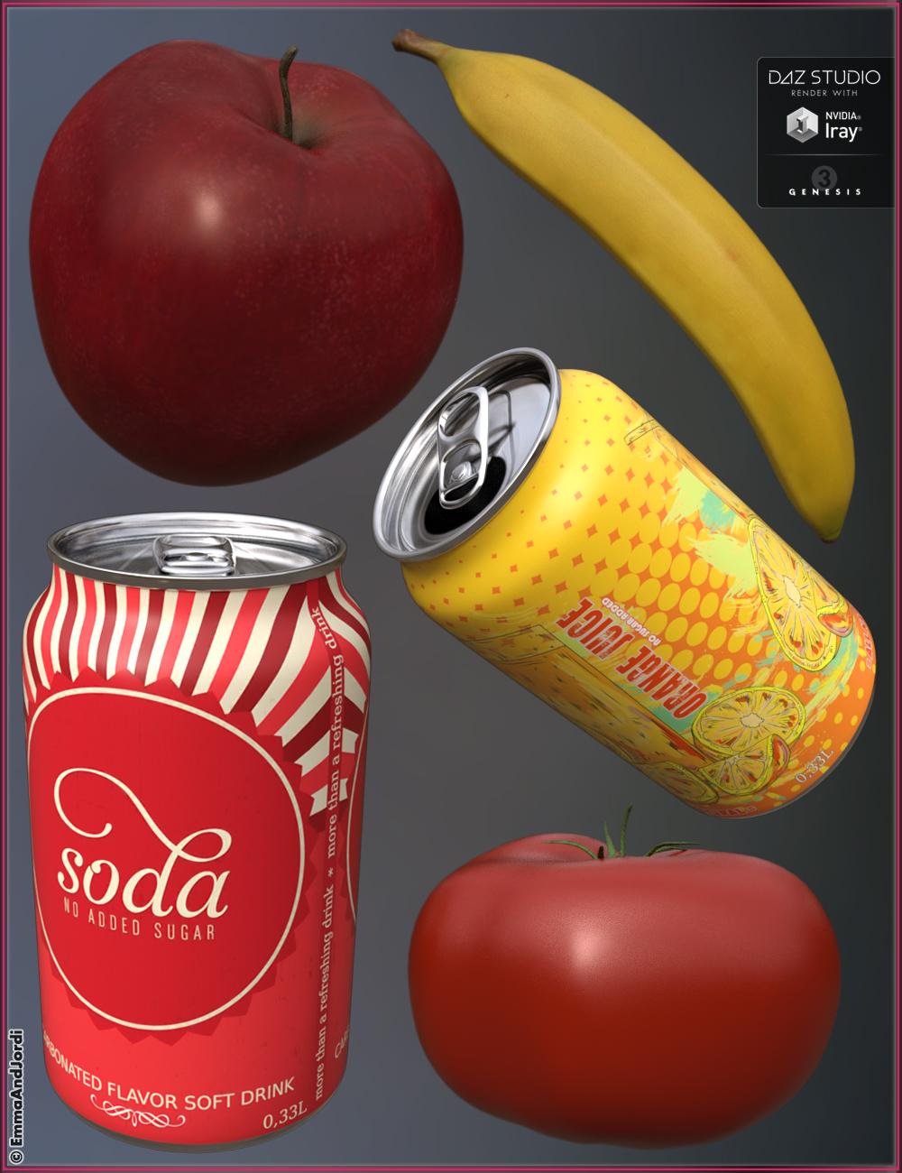 It has a lot of features. For example the can can be opened, the milk carton too. The apple has 2 textures, as the cookie box (croisants or donuts), the can (orange juice or soda)... You can make very fun renders with it. It is a very original product. We hope you like it! :)