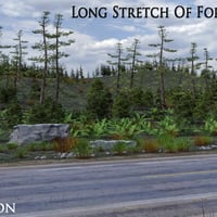 Please note: the trees and ferns and grass included in this set need the base landscape and roadway in the required product. This is a big scene with 1000's of instances added. The 3Delight scene version loads and renders on a 4 gb computer with integrated graphics. Please remember to set Optimization to "Memory" in the render setting for Iray renders.