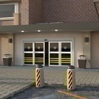 Most police stations, are built like small fortresses, to protect the personnel inside. Designed with defensible positions, the high windows, obscured clear lines of sight into the building, to keep a cop working at a desk safe from a errant bullet. Large barriers block the front entrance, allowing pedestrian traffic, but stopping would be vehicular traffic from crashing into the premise.