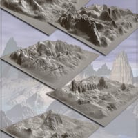 Create a world of fantasy and make-believe with this package of 24 terrains for Bryce. They can be used individually or you can mix and match them to create a wonderfully detailed landscape.