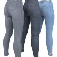 3 Photorealistic Pants: Blue Jeans, Grey Jeans and Black Leather. Models are rigged to Genesis Female 8. JCMs for Thigh Bend are automatically applied.