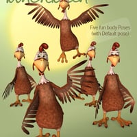 Packed with the character and general wackyness you've come to expect from 3D Universe, this wonderful farm yard character is a perfect addition to your collection of toon animals. Toon Chicken is a fully poseable Poser/DAZ Studio character with expression morphs, bodyshaping morphs, textures and poses.