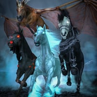 The 4 Horsemen are here! This comprehensive bundle has everything you need to create dynamic, suspenseful scenes. Included are 3 character presets for Daz Horse 3, a Demon wearable preset, a Flame VDB set, themed weapons set, and 2 pose sets.