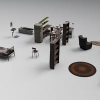 A whole set of dirty and damaged supplies to enhance the interior of your cabin. The cabin is not necessary to use these 34 supplies.