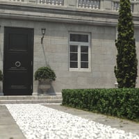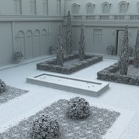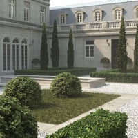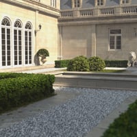 A refined classical courtyard environment built around symmetry, stone architecture, and formal garden design. Ideal for elegant exterior scenes, period settings, and timeless architectural renders.