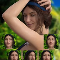 Choose the best face for each situation and express what you want. "A Good Day" contains 30 One-click and 30 morph dial expressions for Genesis 8 Female, divided into categories: Excited, flirty, laughing, silly and smiling