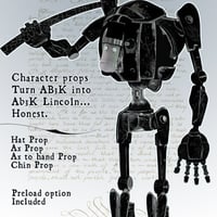Robots with heart, that's the goal. The AB3K has a lot of character and tons of optional looks. Preset colors with an alternate head makes this guy a two in one buy. A character set to create a robotic Ab Lincoln complete with hat, ax and chin hair. Fifteen preset poses.