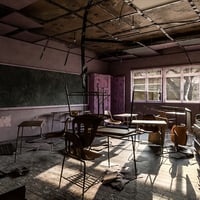 The Abandoned Academy is an environment lost to time and neglect. This set includes broken chairs, cabinets, armchairs, and tables that create a realistic, abandoned scene.