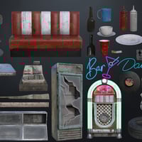 This project helps you to have a unique fantastic abandoned diner pack experience with realistic building, seat, table, bar, jukebox, stool, props etc..