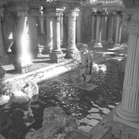 Surrounded by towering marble pillars, the central feature is a large, serene pool, its waters shimmering with ancient power.