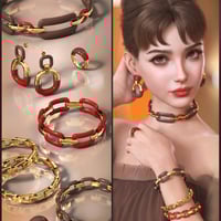 It embraces the chunky jewelry trend, utilizing oversized links and thick bands to create a high-impact, statement-making look. The design is built on the repetition of ovals, rounded rectangles, and softened squares, creating a cohesive linked theme across necklaces, bracelets, and earrings.