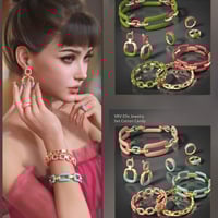 The Bracelets form a chic, modern stack that blends a bold industrial link aesthetic with rich, sophisticated colors. The shapes are simple and geometric, but the stacked silhouette creates a powerful statement. They can be worn together for a maximalist look or individually for everyday elegance.