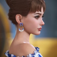 Her doll-like face is characterized by large, expressive, almond-shaped eyes that give her a look of perpetual curiosity. Her small, upturned nose and soft, well-shaped lips create a harmonious balance of innocence and maturity. Her smooth complexion is complemented by faint freckles across the bridge of her nose and a gentle pink blush on her cheeks. Her expression is usually one of calm, intelligent observation, sophisticated yet slightly mysterious.