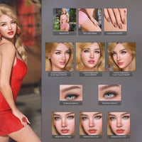 Available to choose from are: 24 makeup options, fibermesh eyebrows, eyelashes, makeup gloss low, medium, high or off, long nails option, french nails, a variety of nail polish colors, custom head morph, custom body morph and three custom expressions: smile open, smile closed, and sultry.