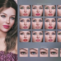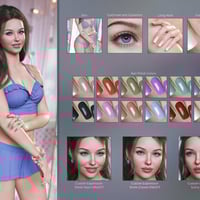 You can choose from 10 eye makeup styles with lipstick, 10 eye makeup styles with lips nude, fibermesh eyebrows, long nails option, a variety of nail polish colors, custom head morph, custom body morph, and three custom expressions: smile open, smile closed, and sultry.