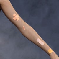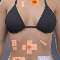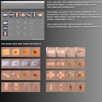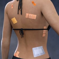Adhesive bandages for Genesis 8 and 3 Female(s) includes several different styles (geo shells) with 4 materials for each type (default, bloody, old, old and bloody).