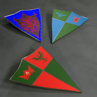 Two different shields, one sword and a lance and lots of different material options for all props.