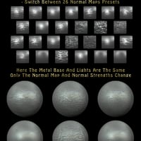 You will find in this product first two Metal Shaders Appliers allowing you, in a simple double click to add to any of your existing props all the additional dials for advanced metal properties management and keeping their main initial image maps. But you will also find 59 various full metal presets already set up for you, relying on variations, for the two metal types, of 18 base pattern families.