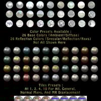 Once your base is chosen, you can then apply more than one hundred sub property presets, allowing you to set up step by step the various properties influencing the final metallic aspect: base colours, reflection colours, specular highlight shapes, reflection type (proportion and strength of mixing environment map and ray tracing), surface defects (up to 5 levels of surface deformations, 26 defects displacements and 26 normal maps available) and individual tiles properties in order to reach the metallic state you want in a few clicks. Advanced Metal Creator is both highly customisable and easy too use thanks to very intuitive dial naming, and very clear sub-folders organisation for sub-properties of metal types.