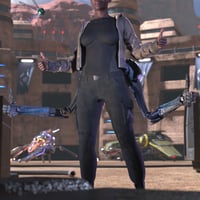 An Auxiliary limb-thruster set, with pseudo-standard tail socket. This set is a modification of the Aux Limb set, where instead of hands, there are a pair of heavy-duty engines. These are designed and intended for the wearer to fly in atmo or Zero G. However, they are clunky and awkward when not powered.