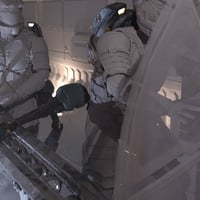A Jetpack, with two articulated thruster nozzles on the bottom, multiple RCS thruster nozzles on the exterior, and two auxiliary thrusters for additional lift. This is a universal pack, and can be mounted on anyone.