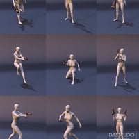 Includes weapons, energy bullet props, magazines, scope, alternative textures, energy blasts, and poses so you can render right away. Props like magazines and the scope are separate wearable props so that you can choose to leave them off, use them as environment props, or demonstrating scenes like reloading or battle prep. The energy beams have 8 different emissive settings and are bright enough to provide moody lighting. There are two magazine types so you can choose to have your firearms powered by futuristic battery packs or if launch energized bullets. As an extra bonus, an alternative skin turns the energy bullets into regular bullets.