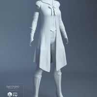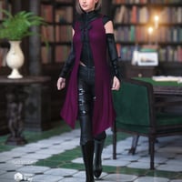 Beautiful gothic style outfit for Genesis 8 Female that has a dForce coat, pants, top, belts, boots and gloves