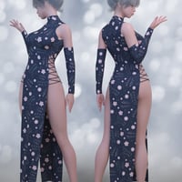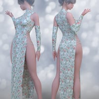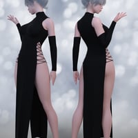 The AH dForce Mei Chen Outfit for Genesis 9, 8 and 8.1 Female is a stunning and elegant dress set that will add a touch of sophistication to any 3D render.