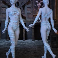 Awaken ancient power and mystery with the AH Female Mummy Outfit, a strikingly detailed outfit designed for Genesis 9, 8, and 8.1 Female characters.