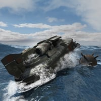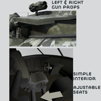 The AirBoat 105 is military styled Hovercraft with two camo textures, Blue and Green. Two swivel gun smart props load with a click to the roof and turn with swivel dials. The rear rudder is rigged to rotate rigorously, right to left. There is a simple interior with an adjustable seat, back and front.
