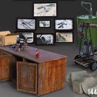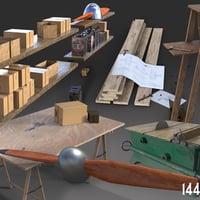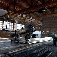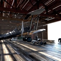 The Aircraft Hangar is composed of 144 props, separable and movable. There are machine tools to cut wood, nails, tarpaulins, mechanical jacks, cardboard boxes and boards, and a multitude of tools and accessories that populate this place. On the walls are old photos from the past that show the glory of these aviation pioneers. The large sliding wooden doors let in biplanes with 6 different designs.