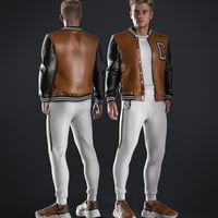 The AJC College Times Outfit for Genesis 8 and 8.1 Males includes a bomber jacket, jogger pants, raglan t-shirt, and sneakers for the most popular boy in high school. Create timeless school scenes ranging from after-school athletics to horror (you know the films). The set includes 5 color options to offer a variety of looks and styles.