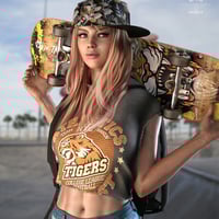 The AJC Pro Skate Top for Genesis 8 and 8.1 Females is a hooded crop-top complete with a selection of 5 color options featuring unique designs to fit a variety of characters. This top is perfect for skate scenes and comfortable streetwear styles.