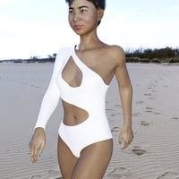 She comes with one body morph, one head morph, one smile morph, 2 complete body textures (Base Mat and Tanned), 7 makeup options, 3 lipstick options and 7 eye textures for both Genesis 3 and 8 Female.