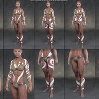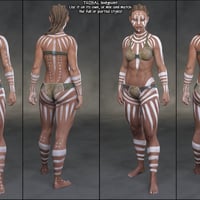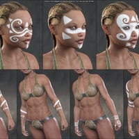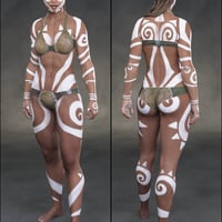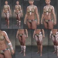 While we have drawn inspiration from a variety of sources, this bodypaints package isn't meant to represent any particular style, tribe or culture, it is a creative and original that aims to be a tool to add depth and interest to a characters's look!