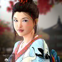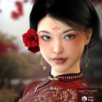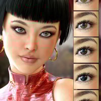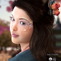 Her face was sculpted in ZBrush and it is mixed with Mei Lin and Genesis 3 Female head morphs. Her skin is based on Genesis 3 Female UV maps and was painted in Mudbox. She comes with Iray and 3Delight material presets.