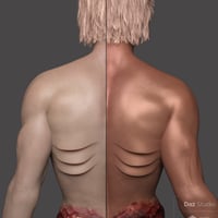 He comes with a wide range of beautiful skin options, including translucency and closs settings, diferent eye choices, his own fibermesh brows and many more customization options. His detail morphs for fingernails, pupil and teeth shapes were custom sculpted in ZBrush.