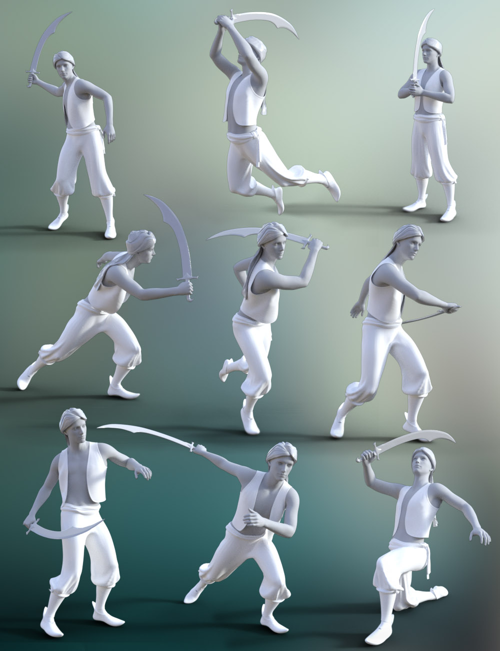 We have included an Arabian inspired Scimitar for those scenes where Ali really has to make his Point. A selection of sword wielding poses will help him get there.