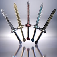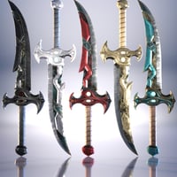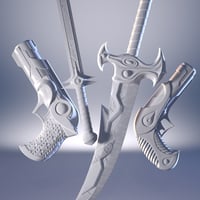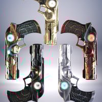 This set features a dagger, sword, and two unique pistols. Wearable presets are included for both Genesis 8 and 9. This set features five material presets for each weapon and multiple material zones for further customization.