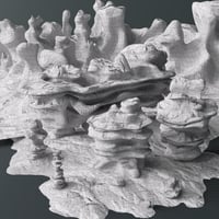 Alien Landscape Construction Set is a clever set of a dozen props that can be arranged or kit bashed into unique world environments. The props have a unearthly flair, and include 3 terrains, 3 stones, and six pillar like structures. The Materials are Iray, but perform well as is in 3Delight.