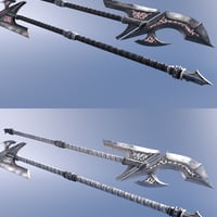 This collection features a sword, axe, and spear, each with four texture sets and a slider-driven animation.