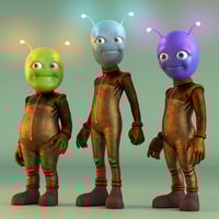 Prepare to embark on an out-of-this-world adventure with three funky alien friends who are ready to add a splash of cosmic fun to your rendered universe!