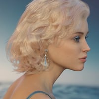 Marilena Hair, a timeless short hairstyle that combines the sleek, straight lines at the crown with soft, flowing waves at the neck. A delicate fringe adds a touch of sophistication, while the subtle volume at the roots gives a confident, glamorous look. The included earrings are designed with a vintage vibe, as to compliment the hairstyle.