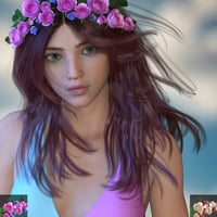 The hair roses are conforming and include 5 morphs, 10 Iray material presets for the roses/flowers, 2 Iray material presets for the leaves and one material preset that converts the Iray material preset of the floral to 3Delight materials. A prop of a single rose, that can be placed freely, is also included.