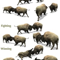 Each set of eighteen paired pose set features a challenging/charging, a fighting, and a winner/loser action for each animal. Each confrontation set-up is optimized for pose modifications to create more actions. All poses were meticulously researched for accuracy.