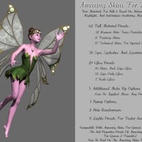 Furthermore, owners of "Amazing Skins for Genesis 2 Females" can use all the additional sub-properties presets included in "Amazing Skins For Genesis 2 Females" on these Belle 6 Amazing skins.