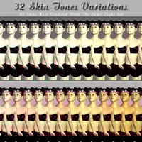 - 32 skin tones variations on Belle 6 skin (cold, neutral, reddish and warm variations for realistic human skin rendering)