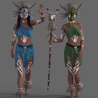Amazon Witch Doctor Outfit for Genesis 8 Female(s) is a set of 5 pieces of clothing plus a shaman staff and body paint. A great outfit for all kinds of adventures in fantasy environments.