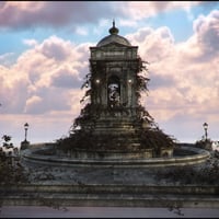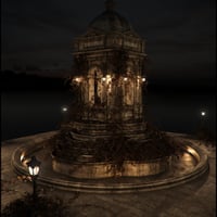 The new high-resolution textures transform the original, clean facade, into a grittier and more distressed structure. Additional lights have been added in conjunction with Iray materials and atmospheric effects, as well as 16 sections of ivy to further create that forgotten and abandoned look.